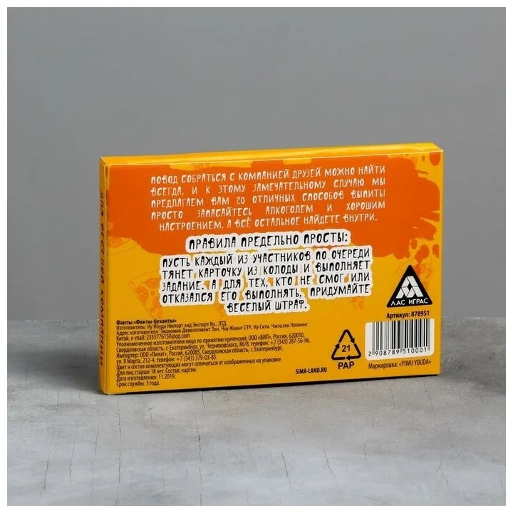 Купить игра для компании "фанты буханты" 20 карт от 100 руб. с доставкой до пункта выдачи в Октябрьске. Интернет магазин ДекаМаркет. Оплата при получении.