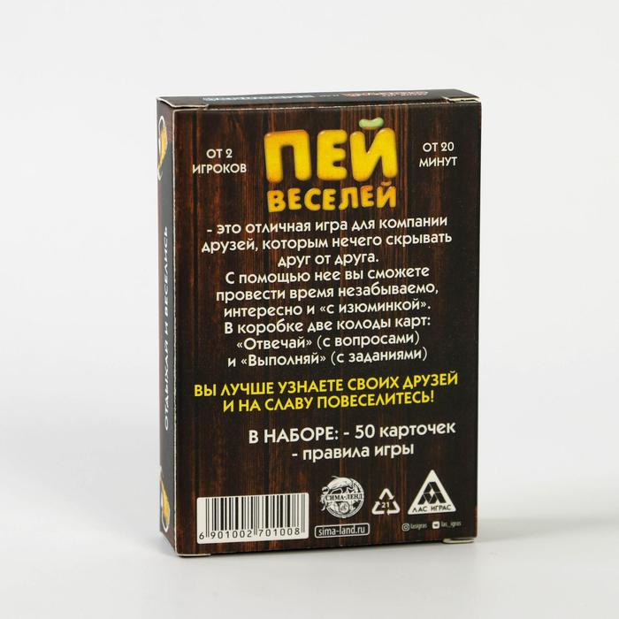 Купить игра для компании "пей веселей" 50 карт от 180 руб. с доставкой до пункта выдачи в Октябрьске. Интернет магазин ДекаМаркет. Оплата при получении.